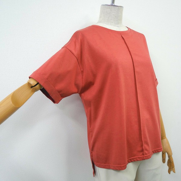光沢感のあるキレイ目生地で、カジュアルになりすぎない大人のエレガンスタイプのトップスです。